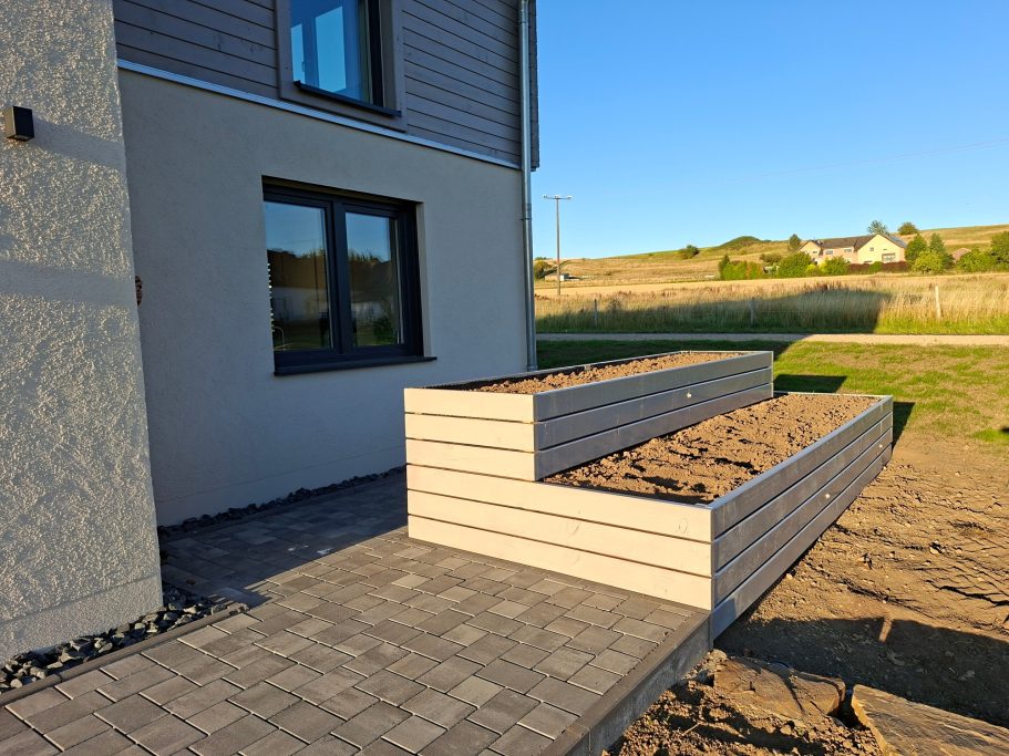 Unser neues Hochbeet aus Holz ist fertig – individuell angepasst und mit viel Liebe zum Detail gebaut.