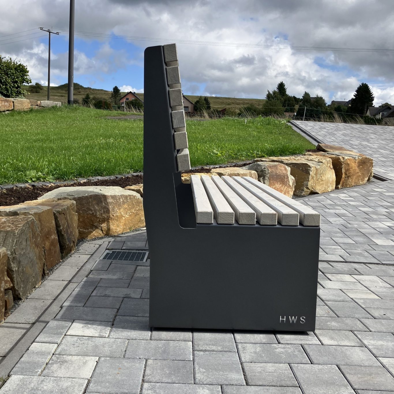 - Die Parkbank ist auch ohne Rückenlehne erhältlich.