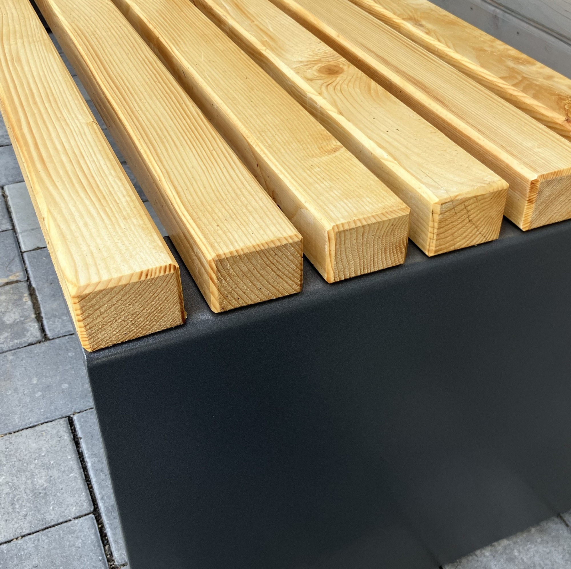 - Die Parkbank ist auch ohne Rückenlehne erhältlich.